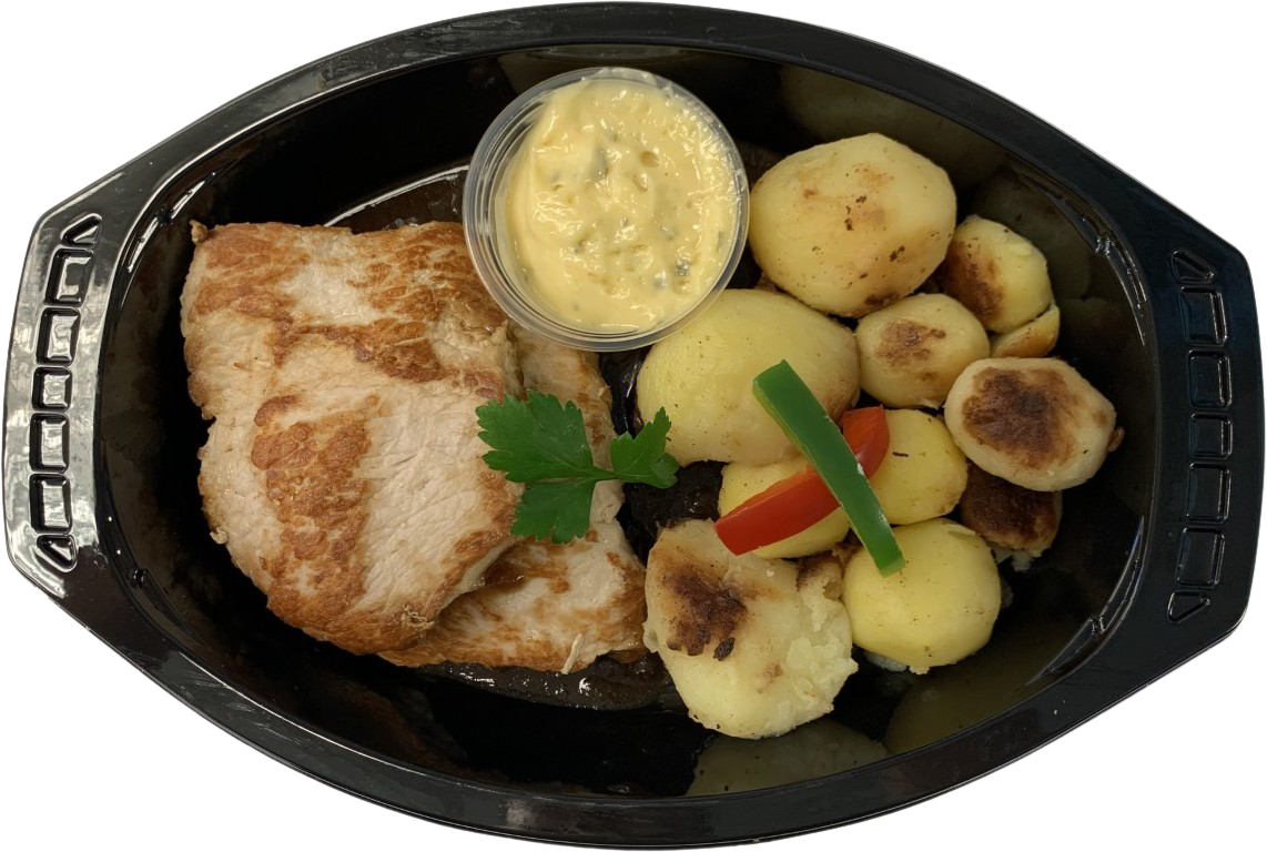 En klassisk svensk favorit – saftiga fläsknoisetter med gyllenstekt potatis och krämig bearnaisesås. Perfekt balanserad med mustig brunsås och en hint av kryddor som lyfter smaken utan att ta över. En rejäl, vällagad måltid som smakar hemlagat – klar på bara några minuter.