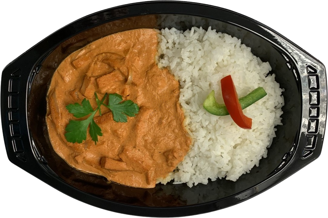 Ris 50%, Falukorv 40% (griskött, vatten, potatisstärkelse, salt, druvsocker, lök, kryddor, antioxidationsmedel (E250), konserveringsmedel (E250)), Sås (lök, rapsolja, tomatpuré, CREME FRAICHE, MJÖLK, kryddor),
